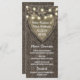 Chaîne Lights + Chêne Barque Cartes de menu Mariage - Dispose d'un coeur sculpté, des lumières à cordes et de minuscules lumières scintillantes éparpillées en haut. L'arrière - plan dispose d'un arrière - plan d'écorce d'arbre. Voir la collection complète ci-dessous.