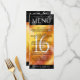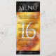 Ajoutez de la sophistication à la 16ème édition des célébrations de l'anniversaire du mariage de topaz doré avec ce menu du dîner, qui comprend des lettres élégantes et des confettis hexagonaux sur une mémoire rouge-jaune-orange profonde et des arrière - plans noirs. Customisez avec le nom du couple, la date du mariage, les détails du lieu, les menus et les messages de félicitations. Design © W.H. Sim. Voir plus sur zazzle.com/expressionsoccasions