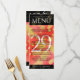Ajoutez de la sophistication aux célébrations du 29e anniversaire du mariage du grenat avec ce menu du dîner, qui comprend des confettis hexagonal, en lettrage élégant et doré, sur des arrière - plans orange et noir rougeâtre. Customisez avec le nom du couple, la date du mariage, les détails du lieu, les menus et les messages de félicitations. Design © W.H. Sim. Voir plus sur zazzle.com/expressionsoccasions