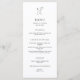 A modern and elegant wedding menu featuring a clean black and white layout with a personalized monogram at the top. The tall 4×9 format creates a refined, editorial presentation, while the minimalist typography keeps every course clear and easy to read. Personalize with your names, date, and menu selections to create a polished finishing touch for your reception tables.
