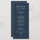 Un menu de dîner minimaliste chic et moderne, mariage nautique bleu foncé. Ce qui présente le design modèle chic de marine bleu solide arrière - plan et la typographie blanche. Et mangeons le libellé dans une élégante calligraphie blanche chic. Attrapez-le et faites de votre menu mariage un menu chic et élégant.