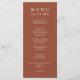 Un menu d'automne en terre cuite chic mariage moderne et élégant. Ce qui présente le design modèle chic de l'arrière - plan solide orange brûlé et la typographie blanche. Et mangeons le libellé dans une élégante calligraphie blanche chic. Attrapez-le et faites de votre menu mariage un menu chic et élégant.