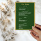 Menu Elégant cadre Gold Script sur Green Mariage Dîner