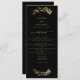 Menu Elégant Chic Black Gold Foliage Réception de maria