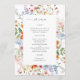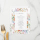 Set the tone for your reception with this elegant wildflower wedding menu, inspired by the soft, romantic beauty of a blooming meadow. Featuring delicate watercolor florals at the top and bottom, this design evokes the charm of hand-painted wildflowers swaying in a sunlit field. The refined script “Menu” header paired with a clean, modern layout creates a timeless balance of rustic beauty and classic sophistication. Perfect for meadow weddings, wildflower weddings, garden receptions, and outdoor celebrations, this menu card beautifully showcases each course—from fresh salads to main entrées and dessert—while enhancing your overall tablescape. The airy white background allows the colorful meadow florals to stand out, making it an ideal complement to boho, botanical, rustic, and nature-inspired wedding themes. Whether displayed at each place setting or on reception tables, this wildflower meadow wedding menu adds a thoughtful, cohesive touch to your wedding stationery suite. Easily customizable to match your meal selections, fonts, and wedding colors. Perfect for: Wildflower and meadow wedding themes Garden, vineyard, and outdoor receptions Boho, rustic, and botanical weddings Spring and summer celebrations