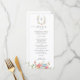 Elevate your reception tables with this romantic wildflower wedding menu card. Featuring a delicate watercolor floral monogram at the top and soft blush, blue, and golden blooms along the bottom, this design brings timeless garden elegance to your place settings.