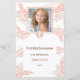 Célébrez la Première Sainte Communion de votre enfant avec ce Menu charmant et personnalisé. Caractérisé par une douce palette de pastels rose et beige, ce design comprend des motifs délicats de feuilles de laurier encadrant la photo de votre enfant pour un effet touchant et mémorable. Les polices élégantes serif et sans serif assurent une mise en page sophistiquée et lisible, avec une icône de croix centrée ajoutant une touche spirituelle. Parfait pour inviter vos proches à être témoins de cette étape sacrée de manière élégante et moderne.