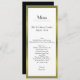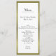 Long et maigre menu de table de mariage fait dans une sensation d'art déco, avec un arrière - plan blanc et un cadre goldtone autour de l'extérieur. Personnalisez tout le texte pour adapter à votre menu de réception de mariage. Belle addition à votre réception de mariage.