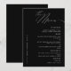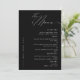 Besoin d'une carte de menu noir et blanc, classique et minimaliste pour dîner Mariage ? Notre design comprend une typographie de script moderne et assez d'espace pour vos options de menu.