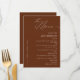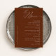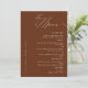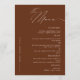 Besoin d'une carte de menu Mariage classique et minimaliste en terre cuite ? Notre design comprend une typographie de script moderne et assez d'espace pour vos options de menu.