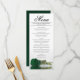 Menu Élégant Emerald Green Rose Réflexions Mariage