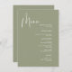 Menu Élégant et moderne mariage vert Sage