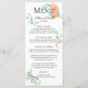 Le design présente des tiges d'eucalyptus d'aquarelle douce et une floraison orange/pêche avec ruban assorti. Le dos est composé d'un design coordonné avec des tiges d'eucalyptus aquarelle et un ruban pêche/orange. Les articles correspondants pour compléter votre collection d'événements sont disponibles dans notre boutique Zazzle!
