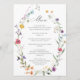 Menu Elégant Fleurs sauvages d'aquarelle Boho Mariage D