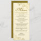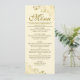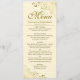 Ce beau menu ajoutera un peu de style à votre réception de mariage. Il présente un design magnifique avec des boucles et des tourbillons dorés ornés sur un arrière - plan couleur ivoire, crème ou blanc cassé. Il y a de l'espace pour les noms du couple et la date du mariage, et le texte est entièrement personnalisable.