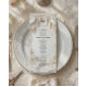 Elevate your luxury estate reception with this sophisticated dinner card, featuring a romantic, faux plaster relief design of an ornate arch and wisteria.Immerse your guests in the romance of a European estate with this artfully composed design. The visual aesthetic mimics the tactile beauty of a 3D bas-relief sculpture, rendered in a soothing monochromatic palette of creamy ivory, soft beige, and antique off-white. An ornate architectural arch, draped in hanging wisteria blooms, frames a serene pastoral landscape featuring a charming bridge, trees, and a pair of white doves, all unified by a simulated white plaster texture. The text is presented in a mix of classic serif and flowing script for a timeless finish.This is a flat printed image with a Faux Plaster Relief effect, not actual raised material or embossed paper.