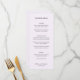 Menu mariage moderne avec un design simple et minimal avec vos noms dans un script manuscrit contemporain. La palette de couleurs est lavande / violet et peut être modifiée dans l'outil de montage de conception. Ce design contemporain convient à tous les styles de mariage.