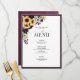 Créez le cadre parfait de la réception avec ce menu tendance de 6,5 x 8,75 pouces avec un bouquet de prune violet, de tournesols et de verdure botanique, et bordée de prune violette. Personnalisez vos détails accentués par une belle calligraphie à la main moderne. Parfait pour, mais pas limité à, ce mariage de jardin et de jardin. Partie d'une suite mariage que nous espérons que vous aimez autant que nous : https://www.zazzle.com/collections/elegant_sunflower_plum_purple_watercolor_script-119479724198769053 Copyright Anastasia Surridge pour Invitations élégants, tous droits réservés.