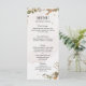 Ajoutez une touche de sophistication à vos tables de réception grâce à ce menu Mariage à couronnes florales séchées élégant. Doté d'un design de courroie florale séchée et joliment travaillé, dans des tons doux et neutres, ce menu est parfait pour les mariages rustiques, boho ou vintages. La disposition minimaliste permet à vos invités de parcourir sans effort vos plats soigneusement organisés, des entrées aux desserts. Imprimé sur des cartons de qualité supérieure et finement mat, ce menu met non seulement en valeur vos plats culinaires, mais sert également de garde-manger élégant pour vos invités.