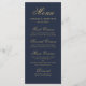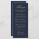 Ce menu de mariage personnalisé présente un script de calligraphie en faux or sur un arrière - plan bleu marine. Personnalisez avec vos noms et votre date de mariage ainsi que vos choix de repas. Meilleurs voeux pour votre mariage et mariage ! Conçu par Susan Coffey.