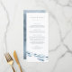 Cet élégant design d'été pour les mariages de plage modernes, les soirées de fiançailles côtières minimalistes ou les dîners de répétition chic au bord de la plage dispose d'une école de poissons d'aquarelle bleu nageant le long du fond. Personnalisez avec deux lignes de texte personnalisé en lettres bleu marine classique, avec vos éléments de menu sous.