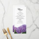 Cet élégant design floral présente des hydrangées violettes. Les magnifiques hydrangées violettes sont agrémentées de leur verdure. Les noms de la mariée et du marié sont assortis au violet de la fleur d'hydrangée et sont encerclés de trois anneaux géométriques. Il s'agit de l'élégant design floral mariage idéal pour n'importe quel thème mariage. Elégant design de carte de menu mariage de fleurs d'hydrangée avec des éléments modernes. Des invitations de mariage et d'autres articles de papeterie sont également disponibles.