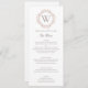 Elégant Monogram Insignia Menu Mariage. Élégant texte gris sur blanc avec un seul insigne de monogramme en cuivre de couleur blush en haut. Customisez avec le nom, l'initiale et le menu de la mariée et de la chambre. Visitez notre magasin Austen & Grace pour voir la suite mariage complète, les produits correspondants et plus encore, et contactez-nous si vous avez besoin d'aide : contact@austenandgrace.com