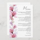 Ces élégants menus de mariage rose floral transparent et poussiéreux peuvent être personnalisés avec vos informations dans la typographie moderne. Conçu par Thisisnotme©