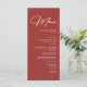 Parfait pour un mariage d'hiver élégant. Ce menu incarne une ambiance mariage moody, idéale pour un mariage de automne moody ou un mariage de Noël. Avec son riche thème mariage bordeaux, il complète toute palette de couleurs de mariage hivernal et offre des idées de mariage hivernal sans fin. Améliorez l'esthétique de votre mariage d'hiver avec cette pièce, parfaite pour les décorations mariages de Noël, les pièces de centre mariages de Noël et l'inspiration mariage de Noël.