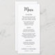 Cette carte de menu mariage est dotée d'un script de calligraphie fluide qui ajoute une touche d'élégance à votre thème noir et blanc. Les menus sont présentés de façon créative dans un agencement minimaliste, afin que vos invités puissent facilement explorer les délices culinaires que vous avez prévus pour votre célébration spéciale.