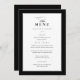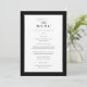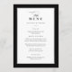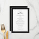 Ce élégant menu Mariage noir et argent est simple et polyvalent. Il présente un design chic blanc et noir avec un monogramme, des détails de script, un cadre argenté simple et un texte formel modifiable. Cliquez sur le bouton Modifier pour customiser cette conception.