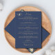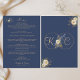 Menu Élégant Monogramme d'or moderne Mariage bleu marin