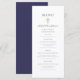 Elegant Navy Blue Religious Cross First Communion Menu.