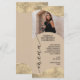 La carte de menu présente des bordures exquises en or champagne et un design neutre qui ajoute une touche élégante à votre événement spécial. Avec suffisamment d'espace pour ajouter une photo de la personne honorée, cette carte de menu est parfaite pour ajouter une touche personnelle à votre célébration. Que vous organisiez un mariage, un anniversaire, un anniversaire ou un autre événement marquant, cette carte de menu ajoutera une touche sophistiquée à votre décor de table.