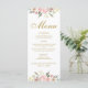 Menu Élégant Pony Rose Or Mariage Floral Dîner