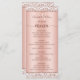 Ce menu de parties scintillant d'or rose, tendance et glamour, est parfait pour votre décor de mariage élégant. La fausse base métallique est encadrée sur le dessus et le bas avec damas, et le titre est dans la typographie script moderne. Sur le dos est un élégant monogramme de script.