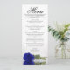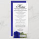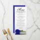 Ce beau menu ajoutera un peu de style à votre réception de mariage. Il présente un design magnifique et romantique, avec un rose bleu royal ou cobalt vivant sur son côté qui se reflète dans un bassin d'eau avec vagues et ondulations. Il y a de l'espace pour les noms du couple et la date du mariage, et le texte est entièrement personnalisable.