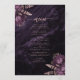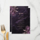 Cet élégant menu de mariage propose des bouquets de fleurs violettes agrémentés d'une végétation rose en faux feuille d'or dans deux coins, sur une image arrière - plan d'agate d'aquarelle violette. Le texte personnalisable combine les polices de serif rose rose et d'écriture manuscrite. L'envers est assorti d'une couleur violet et d'une couleur dorée rose et florale et d'agate.
