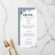 Typographie chic, aquarelle bleu poussiéreuse florale, carte de menu mariage avec caractères dessinés à la main et accents décoratifs. La couleur d'emballage affichée en bleu poussiéreux peut être customisée.
