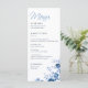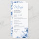 Menu Élégant Script Français Blue Floral Toile Mariage