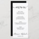 Créez une impression durable sur vos invités mariages avec ce menu mariage élégant et sophistiqué. Le design classique noir et blanc dégage un charme intemporel, tandis que la police de caractères de script moderne avec des embellissements à queue longue ajoute une touche de sophistication. Personnalisez ce modèle de menu avec facilité en ajoutant vos noms, la date du mariage et de délicieuses sélections de menu qui séduiront les papilles gustatives et raviront les invités. Que ce soit pour un délicieux repas de trois plats ou un buffet copieux, cette carte à la carte vient agréablement compléter votre décor de réception. Faites de votre journée de mariage une expérience culinaire inoubliable, adaptée à vos goûts uniques. Ce menu chic et personnalisable à la fois mariage est un guide pratique pour vos invités et un élégant souvenir de votre journée spéciale.