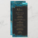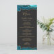 Ce menu mariage moderne et élégant présente des bordures de haut et de bas de l'agate d'aquarelle bleue turquoise, égayée de fausse parties scintillant dorée. Le texte apparaît dans une élégante écriture manuscrite de couleur or, des polices italique et cuivre sur un arrière - plan noir ardoise. La conception de l'agate est répétée à l'envers.