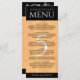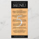 Ajoutez de la sophistication aux célébrations du 5e anniversaire du mariage de bois avec ce menu du dîner, qui comprend des lettrages élégants sur le faux, le grain de bois clair et les arrière - plans noirs. Customisez avec le nom du couple, la date du mariage, les détails du lieu, les menus et les messages de félicitations. Design © W.H. Sim. Voir plus sur zazzle.com/expressionsoccasions