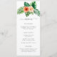 Ajoutez une touche moderne et élégante à votre mariage avec ce menu design, mettant en vedette des feuilles tropicaux d'aquarelle et des fleurs d'hibiscus sur un arrière - plan blanc. Le côté verdoyant profond s'ajoute aux thèmes de mariage tropicaux, de plage ou de destination.