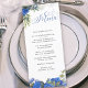 Menu Élégante calligraphie Roses bleus et Eucalyptus