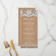 Dentelles élégantes & Papier d'artisanat rustique Slim Wedding Reception Dîner Menu. Dentelles délicates sur Arrière - plan de papier d'artisanat Brown souple. Aucun papier de dentelle ou d'artisanat n'est utilisé sur cet Invitation. Les effets de dentelle et de texture sont imprimés.