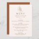Conçu pour s'harmoniser avec notre collection Elegant Botanical Moon and Stars mariage, ce menu mariage boho présente une ligne d'art en terre cuite illustrant une lune ornée d'étoiles et de feuillage sertis contre un arrière - plan crème. Personnalisez le menu mariage de lune avec vos noms, votre date de mariage et vos offres de menu.