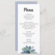 Elégant menu de réception de mariage verdoyant, avec un design vert succulent sur un arrière - plan blanc. Le dos a un arrière - plan violet pâle qui accuse la luminosité du devant. Avec le lettrage personnaliser, vous pouvez ajouter vos propres choix alimentaires. Idéal pour ajouter une touche botanique désertique à votre journée spéciale.