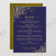 Menu Élégantes dentelles d'or sur Mariage bleu marine
