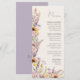 Offrez à vos invités le menu de la soirée avec ce ravissant mélange pastel de lavande, rose et crème. Le design avant affiche un magnifique motif de fleurs sauvages parfait pour un mariage de printemps ou d'été, une baby shower ou une douche de mariée. Personnalisez facilement le design grâce au modèle de design. Coordonez avec les autres éléments de la collection Spring Meadow.